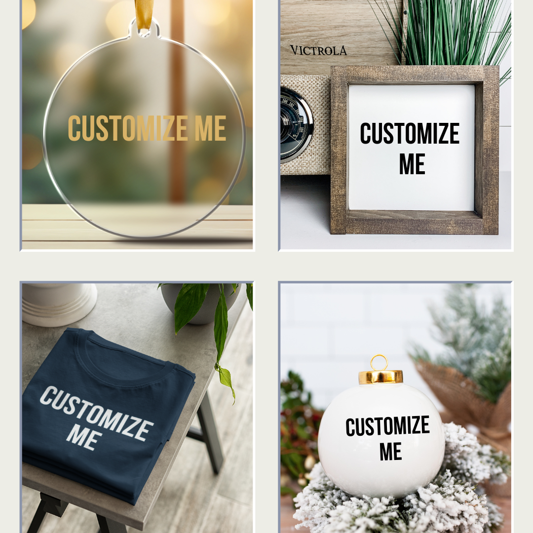 Customize Me Collection features personalized t-shirts, wood signs, totes, and holiday gifts....